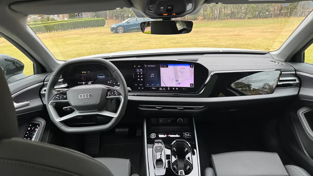 Ao contrário do nítido movimento que tem acontecido com algumas marcas de luxo, a Audi não partiu para o minimalismo exagerado que leva a perda de qualidade de acabamento. O interior do A5 ainda é bem feito e moderno na medida certa. Temos duas telas gigantes paralelas, uma para a central, outra para o painel de instrumentos.