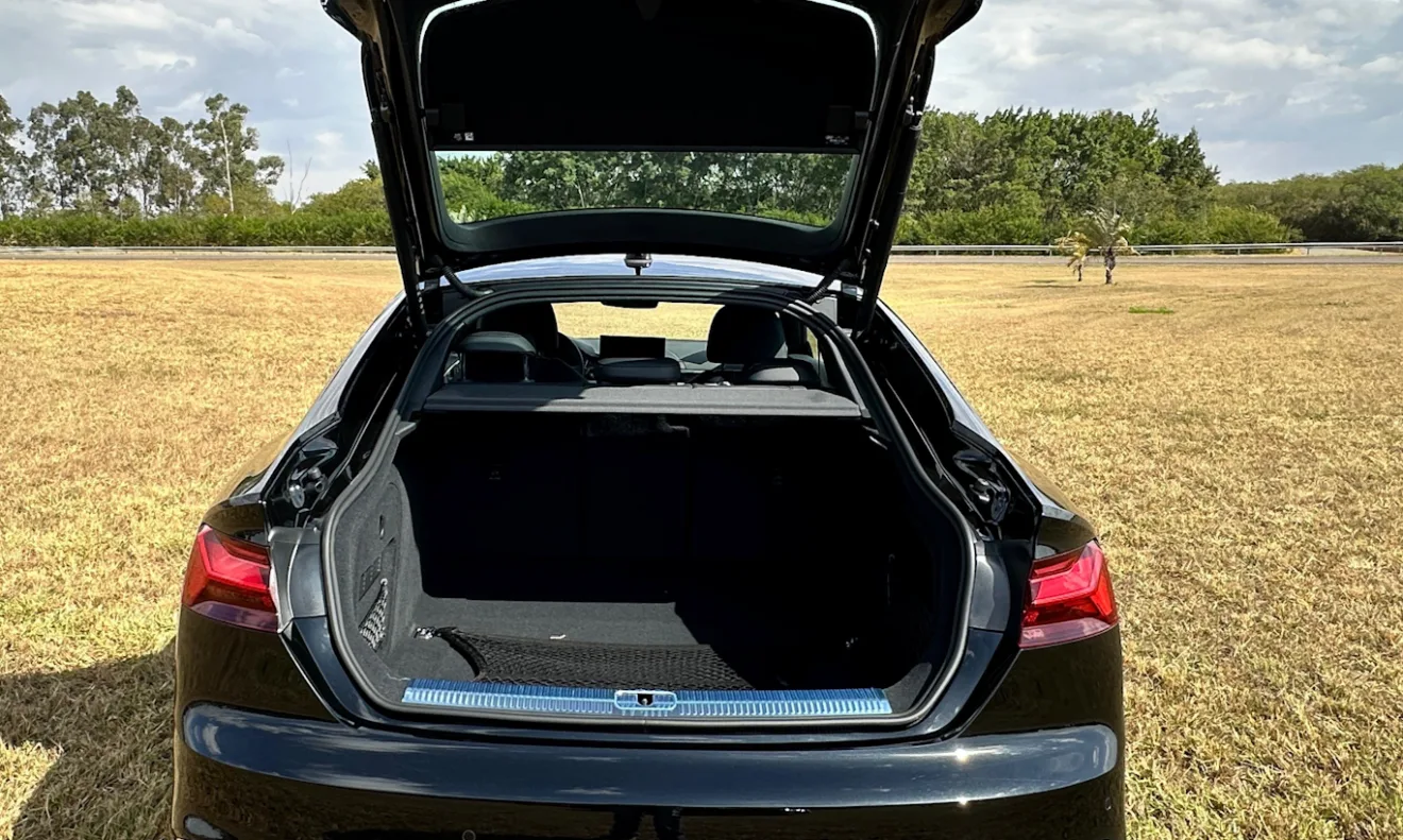 Um dos destaques do A5 Sportback está na harmonia das linhas juntamente às portas com ausência de molduras. Um charme à parte. Com 4,75 m de comprimento, 2,02 m de largura (incluindo os retrovisores), baixos 1,386 m de altura, espaçosos 2,82 m de entre-eixos e 465 litros de porta-malas. Só que, sem dúvidas, é um dos carros mais belos à venda em nosso mercado.