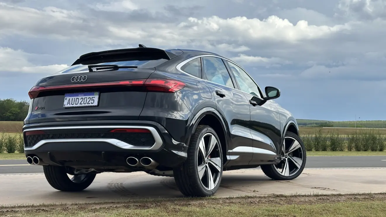 A silhueta cupê do SQ5 Sportback resulta em 1.644 mm de altura, levemente inferior aos 1.649 mm do SQ5 SUV. Em relação ao antecessor, que media 4,67 m de um para-choque a para-choque, ele espichou 3,5 cm no comprimento, enquanto o entre-eixos praticamente se manteve, passando de 2,81 m para 2,82 m, o que transmite um bom espaço para as pernas e os joelhos dos passageiros traseiros, mesmo com um porém.