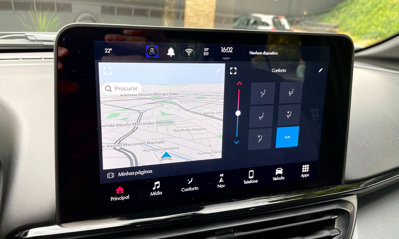 Há de pontuar ainda a excelente central multimídia. Tela de boa definição, tamanho adequado (apesar do excesso de bordas) e funcionamento intuitivo. Tem Android Auto e Apple CarPlay sem fio. Junto a ela, o painel de instrumentos totalmente digital da Fiat também merece destaque por ser fácil de usar e completo em informações.