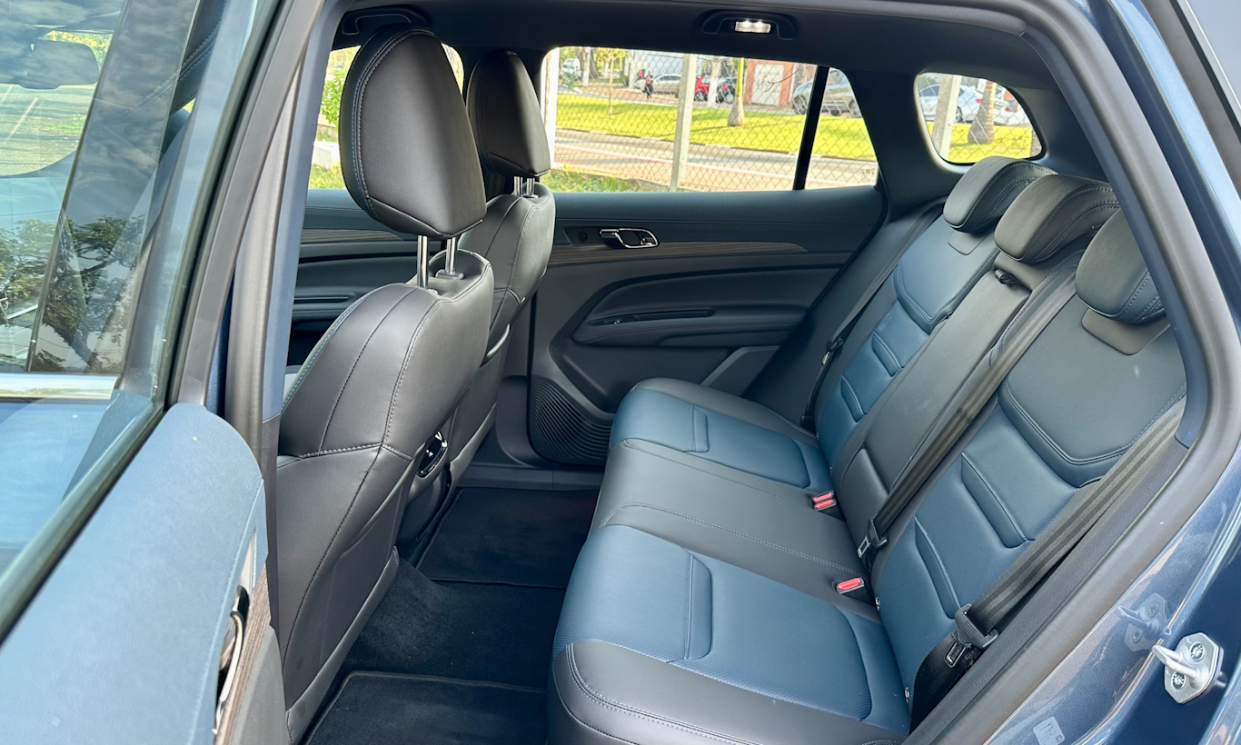 Na frente, motorista e passageiro têm bancos com controle elétrico e ventilação. Já quem senta atrás tem a vastidão de espaço para as pernas e cabeças que só carros de projeto chinês sabem fazer. É enorme e faz parecer um carro bem maior. Porta-malas carrega 448 litros e se destaca pela tampa com abertura elétrica e pelo carpete de qualidade usado.