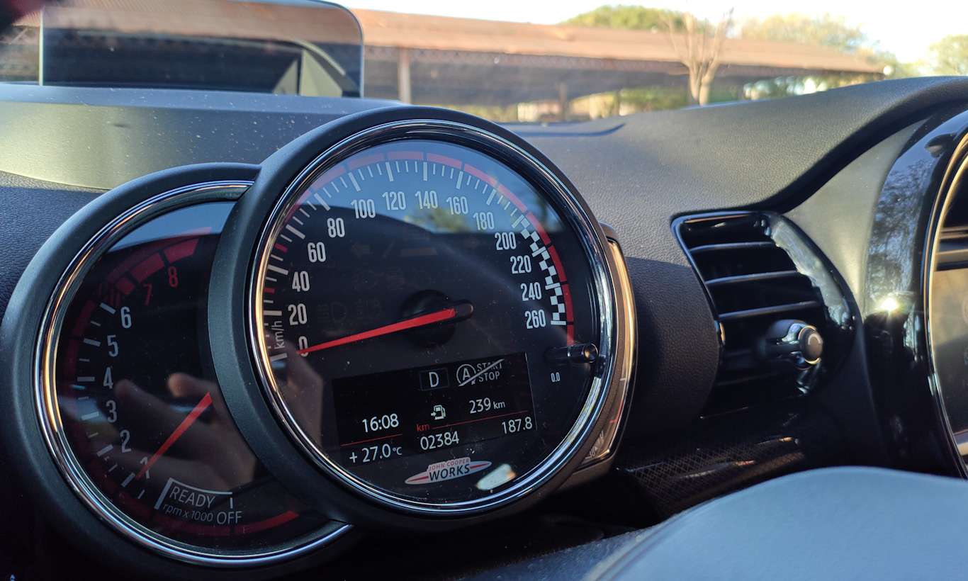 Em tecnologia, a Mini Clubman fica devendo em alguns itens. Ainda que tenha Apple CarPlay sem fio, os donos de celular Android terão de se virar sem a conectividade, já que não há Android Auto. Já o GPS nativo é confuso de usar e tem gráficos carregados e poluídos. Mesmo tendo a facilidade de mostrar as direções do GPS no head-up display, admito que desisti de usá-lo e apelei para o bom e velho Google Maps no celular mesmo.