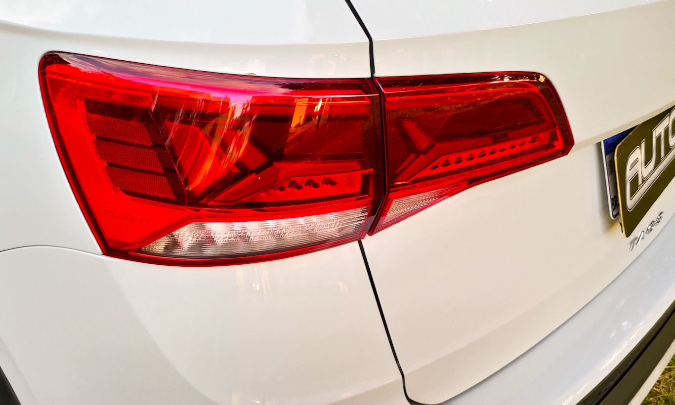 A traseira é um pouco sem sal, especialmente se comparada ao Nivus e ao T-Cross, que contam com uma barra preta conectando as duas metades. O Taos, nesse quesito, lembra uma versão mais barata do Tiguan, mas sem a mesma presença. Ao menos compensa ao abrir a tampa do porta-malas, com bem servidos 498 litros de capacidade.