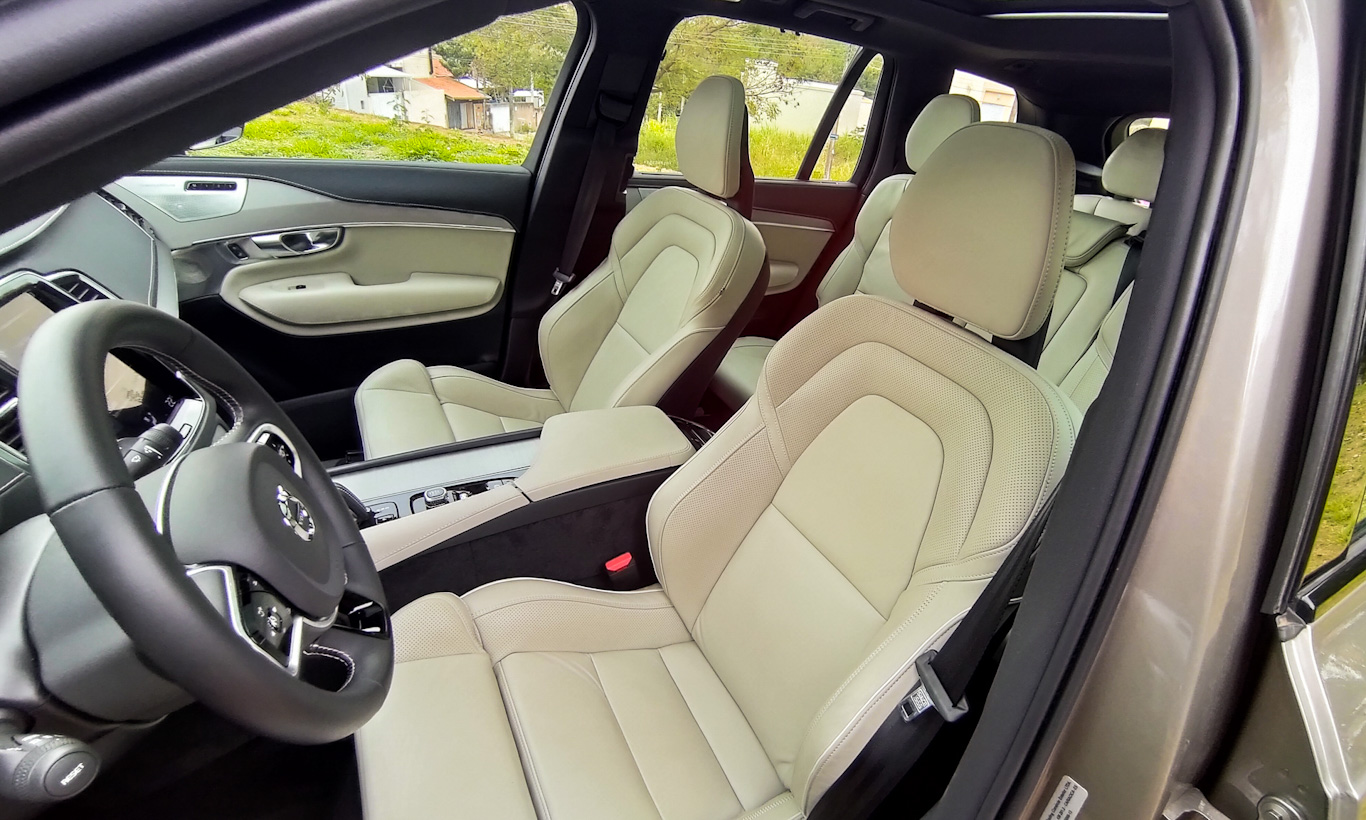 A única baixa, entretanto, foi o fato de que a Volvo tirou do XC90 a chave revestida em couro, agora é de plástico como nos XC40 mais baratos, os bancos com aquecimento e ventilação, além dos emblemas R-Design pela cabine e exterior.