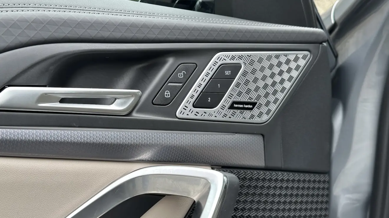 Essa experiência é ainda mais aprimorada pelo volante de três raios, com aro grosso, que garante uma pegada firme. O interior do iX2 exibe um toque de minimalismo, com o seletor de marchas operado por uma pequena alavanca. O carregador de smartphone, posicionado na vertical e com sistema de travamento, também é uma característica prática. Para completar, o sistema de som assinado pela Harman-Kardon oferece uma excelente pureza sonora, com graves bem definidos.