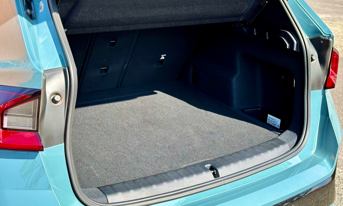 O espaço é bem apertado, tanto para as pernas quanto para os ombros. Além disso, o cinto central fica pendurado no teto tem um dos lados passando pela lateral do rosto do passageiro direito. Ao menos o assento pode ser reclinado para tentar dar mais conforto. Com abertura elétrica, o porta-malas carrega 476 litros e leva o estepe.