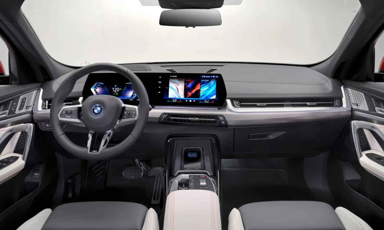 Fora as questões mecânicas e o porta-malas reduzido no elétrico, o restante desse texto vale tanto para o BMW X2, quanto para o iX2. Afinal, são idênticos. A cabine é bastante refinada para a categoria, tendo materiais macios por todos os cantos, inclusive na porta traseira, onde o X1 não traz.