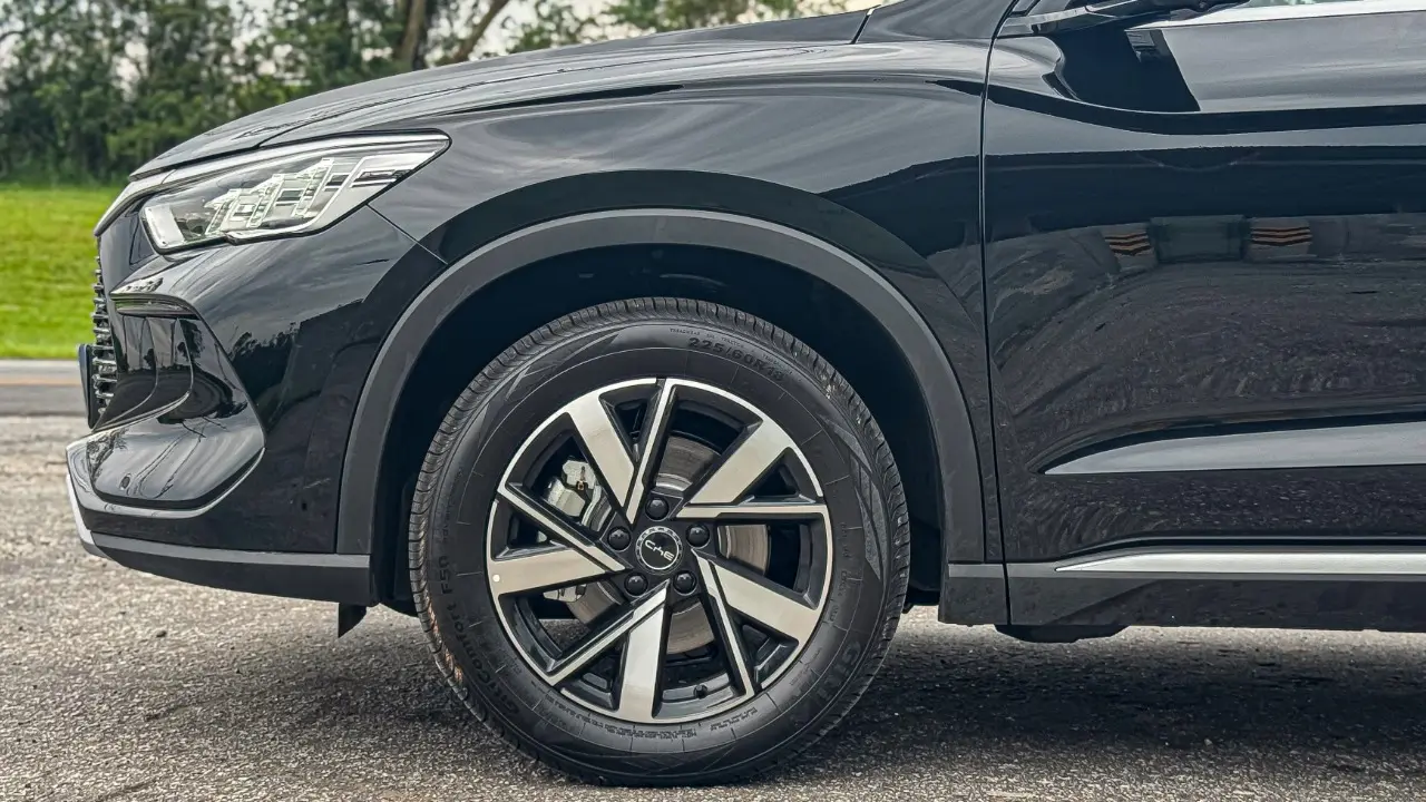 Outro ponto positivo é que ele não raspa em valetas e rampas, graças ao bom ângulo de ataque. Rodar na cidade é simples e confortável, ainda mais com os pneus 225/60 que ajudam bastante na absorção. A suspensão independente nas quatro rodas (McPherson na frente e multilink atrás) segue o padrão confortável da BYD, mas com mais controle do que as calibrações antigas da marca.