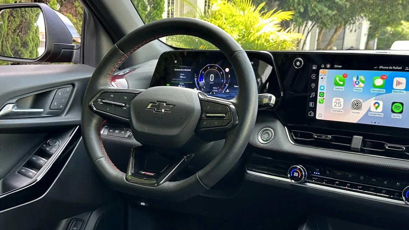 A direção elétrica é leve em baixas velocidades e ganha peso adequado em velocidades maiores, contribuindo para o bom comportamento dinâmico do Chevrolet Equinox.