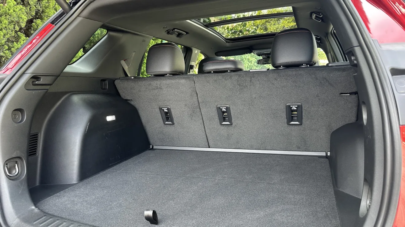 Pessoas com mais de 1,80 m de altura acomodam-se bem, e o entre-eixos de 2,73 m garante bom espaço para as pernas. Além disso, há saídas de ar dedicadas e materiais macios ao toque na segunda fileira de bancos, padrão que se estende por todo o habitáculo.