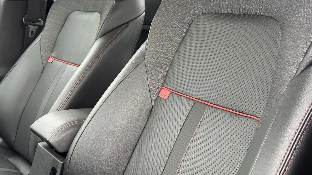 A Chevrolet Montana RS traz um acabamento exclusivo, com costuras vermelhas aplicadas nas laterais das portas, no volante multifuncional de base achatada e nos bancos. Estes acomodam bem o corpo, especialmente na região das costas e lombar, e combinam revestimentos em couro e tecido, além de exibirem uma pequena e simpática etiqueta com a bandeira RS na porção frontal da cabine.