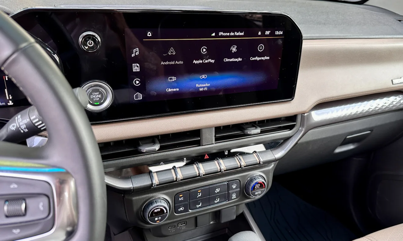 Há ainda alerta de mudança de faixa, o que caracteriza que a picape tem apenas alertas, mas não intervém na condução do motorista, ficando atrás de todas as rivais mais modernas. Há ainda central multimídia com Android Auto e Apple CarPlay sem fio, chave presencial, ar-condicionado digital de uma zona, acionamento remoto do motor e wifi.