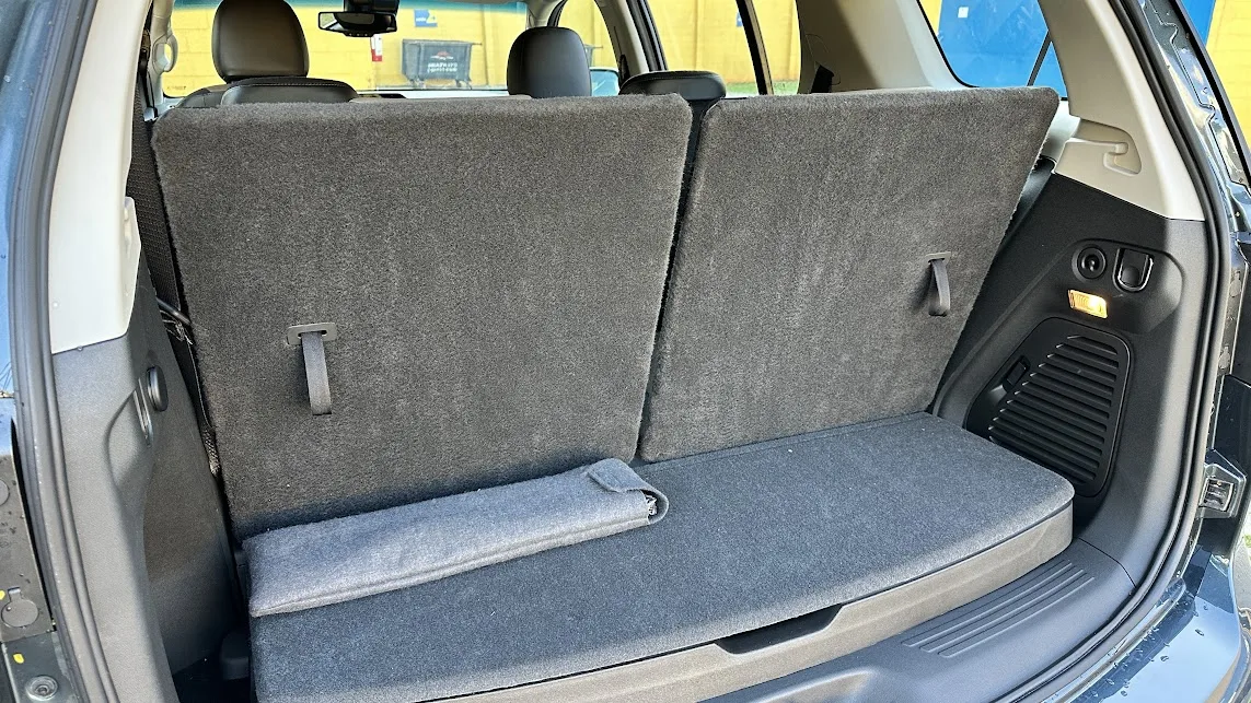 Como não poderia ser diferente em um carro com quase cinco metros de comprimento, quem viaja atrás dispõe de muito espaço para as pernas e joelhos, graças aos 2,84 m de entre-eixos – o Toyota SW4 tem 2,74 m e o Mitsubishi Pajero Sport, 2,80 m, para comparar.