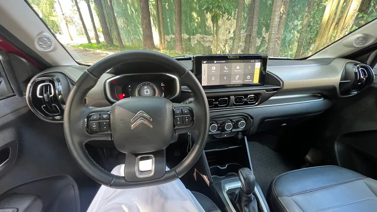 Quanto ao interior falta esmero. Tem plástico duro para todo lado. As portas, por exemplo, parecem ser de um carro de entrada. O painel é aquela peça de roupa bonita, mas que quando você chega perto ou toca percebe que falta qualidade. Mas a Citröen tenta distrair os consumidores com o painel de instrumentos digital de 7” e a central multimídia de 10” com acabamento black piano.