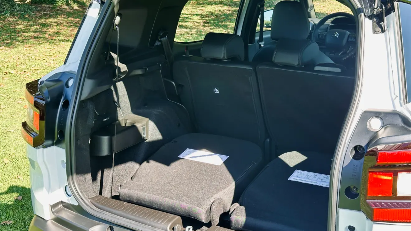 A turma do fundão do Aircross terá acesso a bancos confortáveis, mas com piso bem alto. Surpreendentemente, no entanto, mesmo eu tenho 1,87 m de altura, não raspo a cabeça no teto. Agora há duas saídas USB na fileira do meio e uma no porta-malas para os passageiros lá de trás. Com os bancos dobrados, são 493 litros de capacidade e eles são facilmente removíveis.