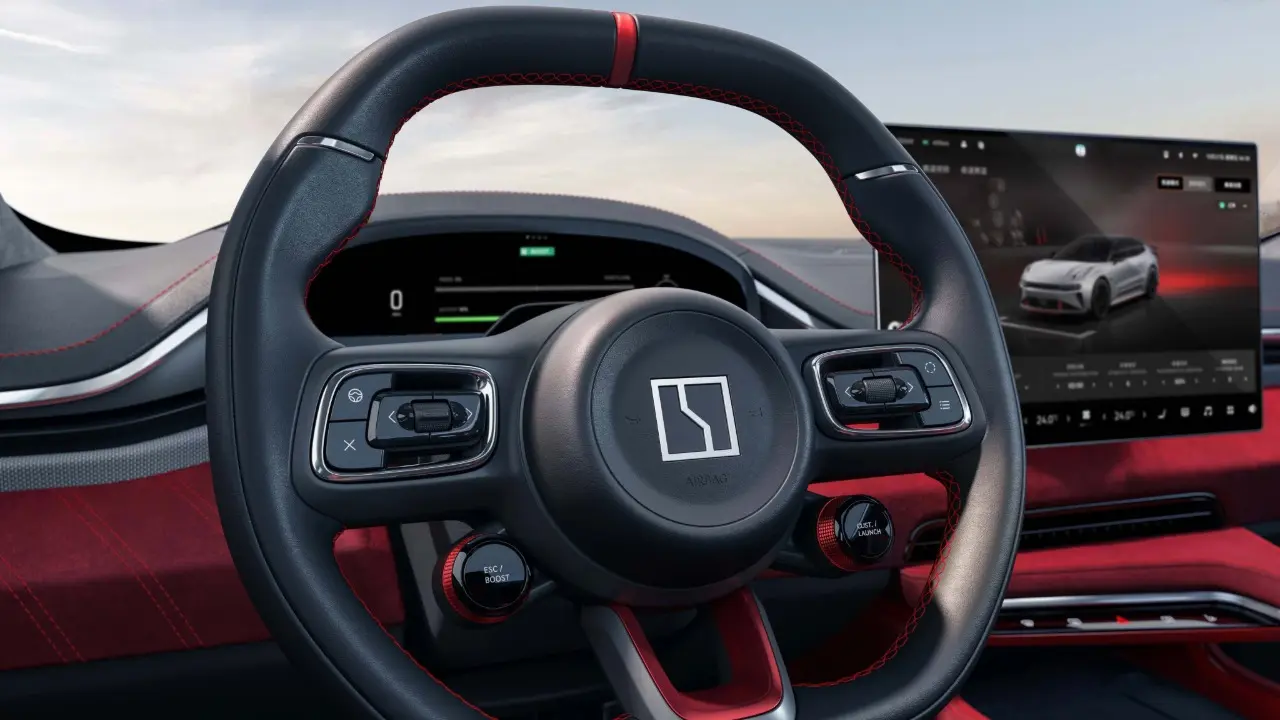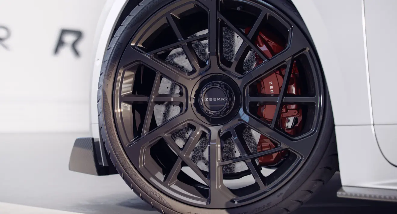 O nobre material foi aplicado no teto, no spoiler frontal, assim como na asa montada sobre a tampa do porta-malas e no difusor na porção inferior do para-choque traseiro. O visual intimidador do exterior do elétrico radical da Zeekr vai ao encontro da cabine construída com esmero e atenção em todos os detalhes.