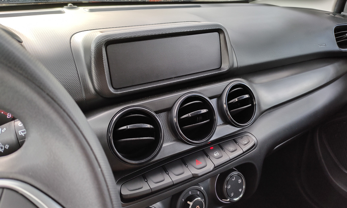 Uma das vantagens que o Argo sem nome tem em relação aos rivais é que como ele foi pensado para suprir até o público do Bravo, a Fiat caprichou no interior. Ainda que a ausência de rádio seja o ponto mais notável, ele não parece um carro básico demais. O painel é dominado pela cor preta, mas existem diversas texturas criando contrastes interessantes.