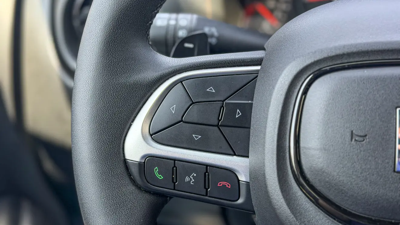 Em termos de ergonomia, com meus 1,88 m, precisei recuar totalmente o banco, que não tem ajuste de altura, enquanto o volante regula apenas em altura, sem profundidade. A posição de dirigir é bem parecida à de um SUV, com boa visibilidade, mas a ergonomia poderia ser melhor.