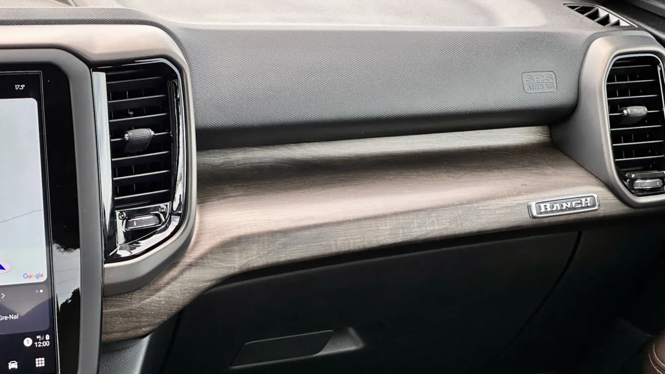 A Ranch tem elementos em marrom, plástico imitando madeira e interior com itens no tom de marrom. Já a Ultra traz acabamento todo escuro, com pequenos pontos e detalhes em vermelho, evocando esportividade. O couro usado no banco e volante de ambas é de boa qualidade.