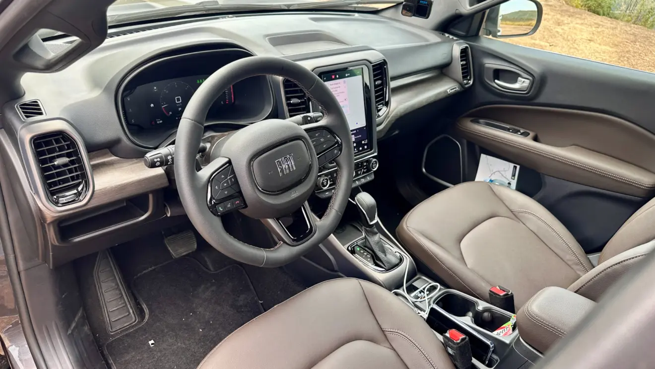 Debaixo do capô, você tem duas escolhas: motor 1.3 quatro cilindros turbo flex com câmbio automático de seis marchas e tração dianteira ou 2.2 quatro cilindros turbo diesel com câmbio automático de nove marchas e tração nas quatro rodas. Cada qual com sua receita e proposta, mas a Fiat Toro 2026 se dá melhor com o diesel.