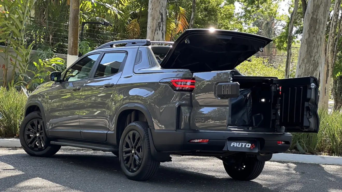 No segmento de caminhonetes, a caçamba pode ser um fator decisivo na hora da compra. Na Fiat Toro Ultra 2026, a área dedicada ao transporte de cargas mede 1,33 m de comprimento, 1,36 m de largura e tem altura máxima de 571 mm. Em termos de capacidade, o volume é de 937 litros e a carga útil, de 670 kg.
