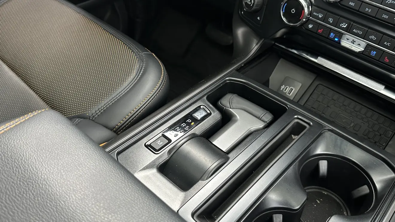 O conjunto de telas exibe o quadro de instrumentos e o multimídia, ambos com 12 polegadas e boa visualização. Quem viaja na segunda fileira encontra ótimo espaço para pernas e joelhos, graças aos 3,69 m de entre-eixos. Valor maior que os 3,67 m da Ram 1500 Laramie, contudo, inferior aos 3,74 m da Chevrolet Silverado High Country.
