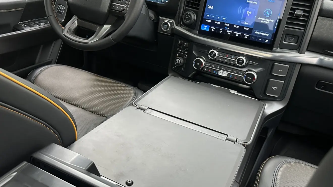 Outras comodidades incluem os ajustes elétricos da coluna de direção, em altura e profundidade, e dos pedais de acelerador e freio. Assim como na Ranger Raptor, há seis comandos customizáveis no teto, que podem ser utilizados para acessórios, como luzes auxiliares ou reboque.
