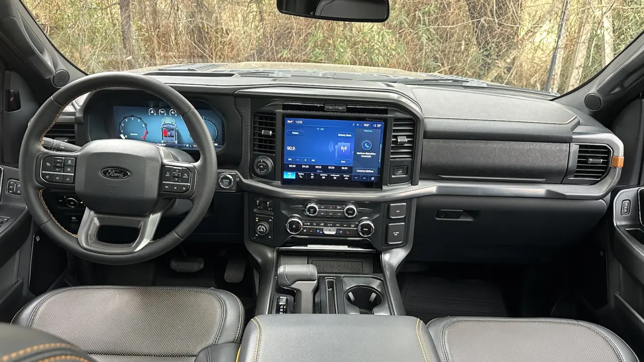 Mas quem encara o off-road também busca conforto a bordo. Ao abrir a porta, o cheiro do interior não remete ao de jatos executivos, como acontece na Ram 1500 Laramie. Mesmo assim, merecem destaque os materiais e os acabamentos bem feitos da cabine da Ford F-150 Tremor.