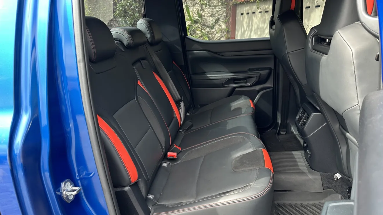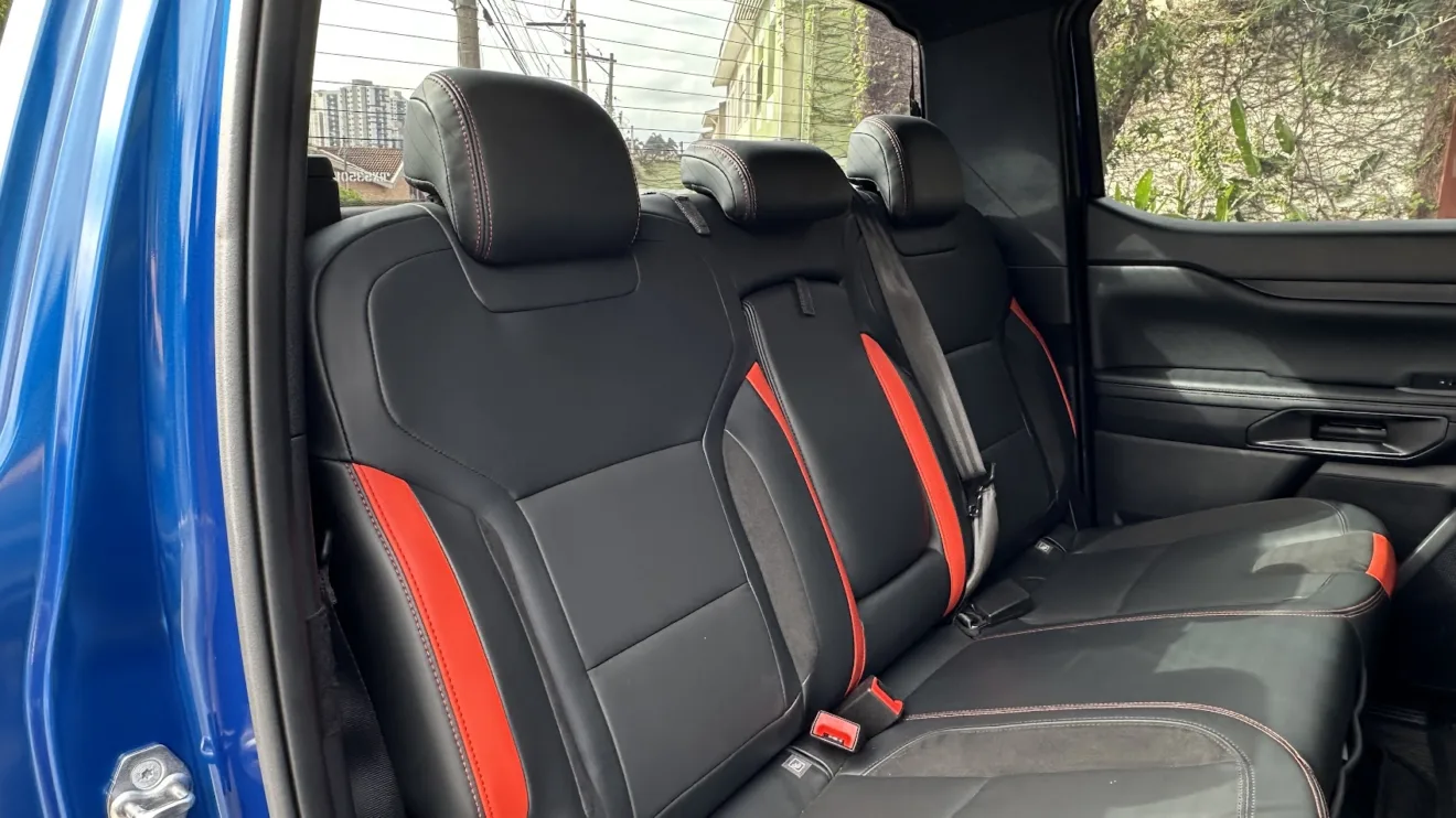 A Ranger Raptor também cuida muito bem dos ocupantes oferecendo bons materiais e arremates ao acabamento, além dos detalhes pintados de laranja nas saídas de ar e nos bancos ajustáveis eletricamente, com um desenho que evita que o corpo fica sambando nas curvas contornadas mais velozmente.