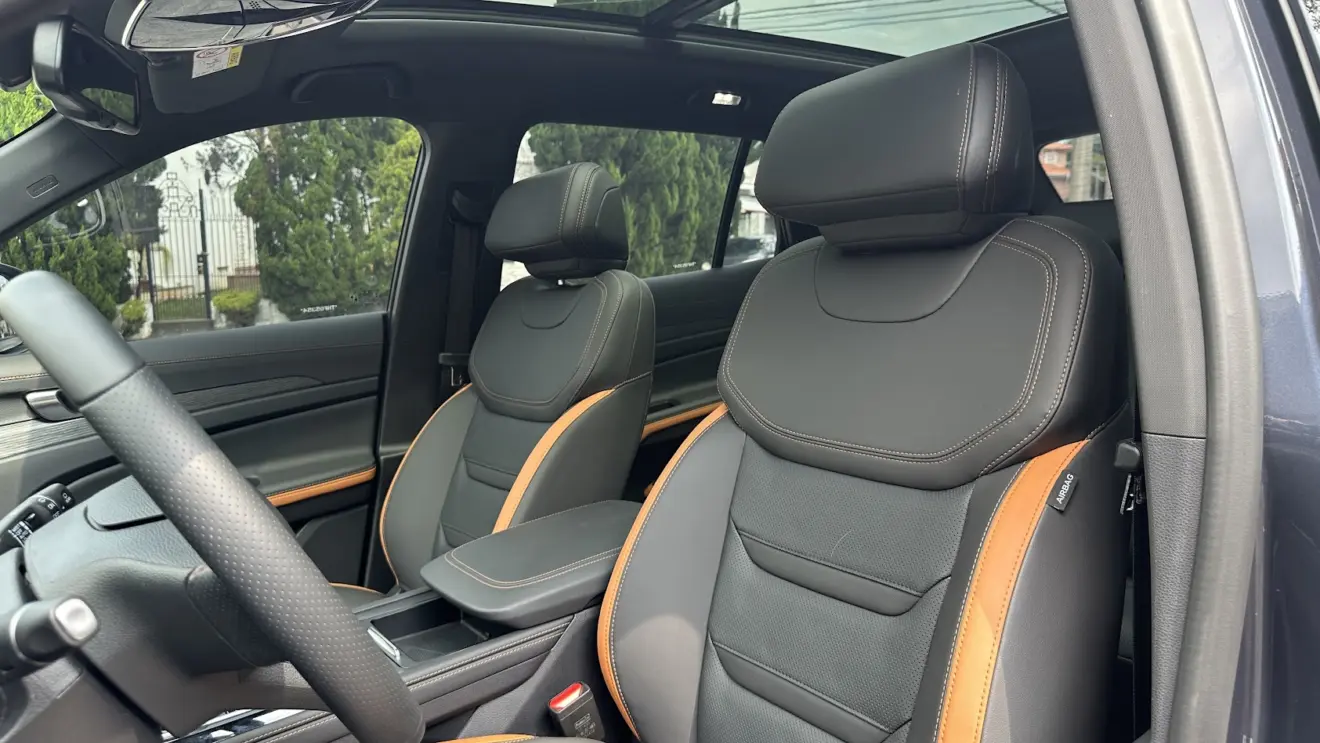 A posição de dirigir é confortável e rapidamente encontrada. O banco do motorista conta com ajuste elétrico em dez posições, enquanto o do passageiro oferece regulagem em quatro. Ambos dispõem de aquecimento e ventilação. O seletor de marchas giratório contribui para o aproveitamento do espaço na cabine, ao eliminar a alavanca tradicional, e o SUV segue a atual tendência das telas.