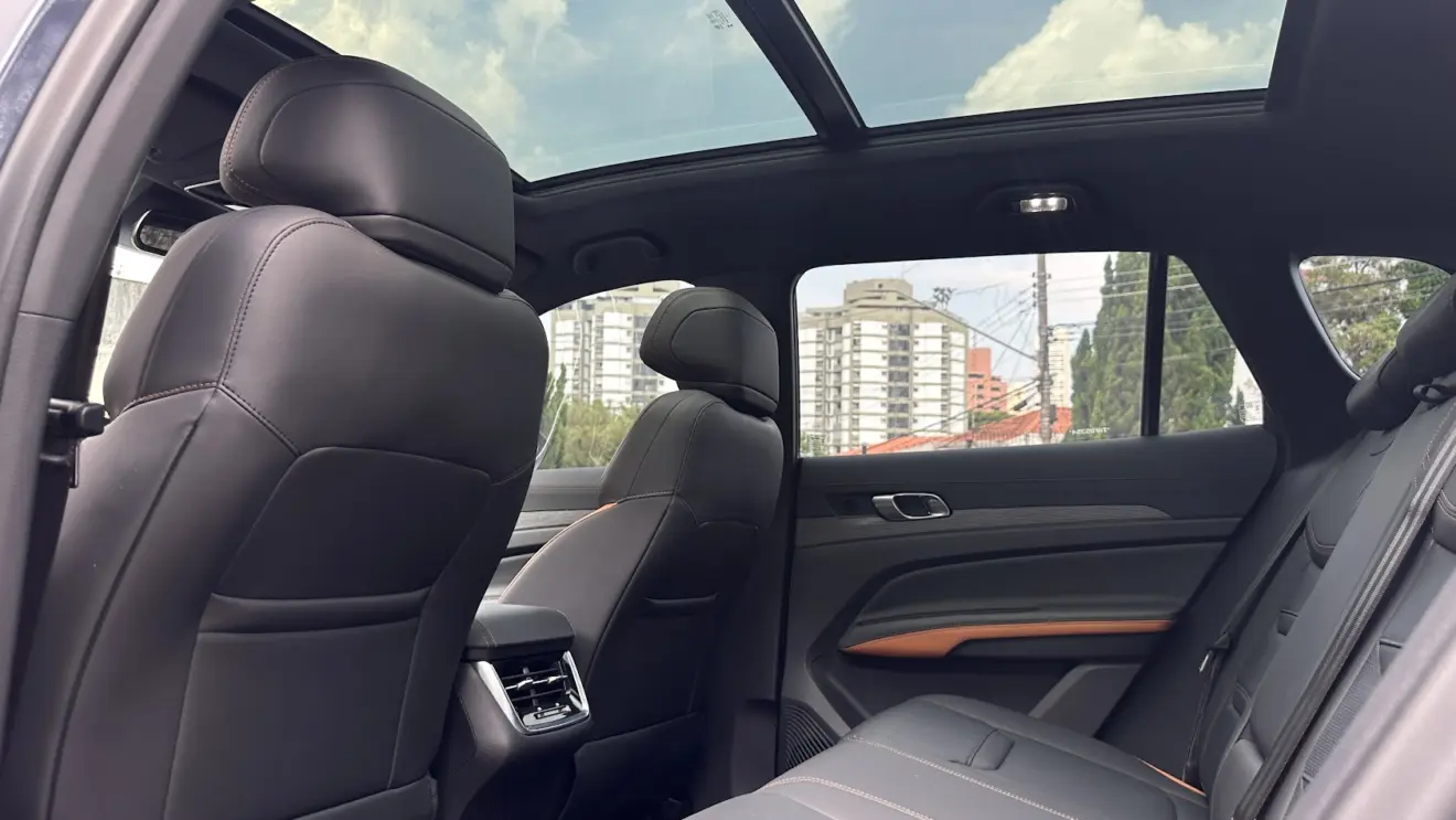 A sensação de amplitude interna é reforçada pelo teto solar panorâmico, que amplia o contato dos ocupantes com o meio externo. Além disso, quem viaja a bordo conta com um pacote completo de segurança, que inclui seis airbags, alerta de colisão com frenagem autônoma de emergência, monitoramento de pontos cegos e controle de velocidade adaptativo.