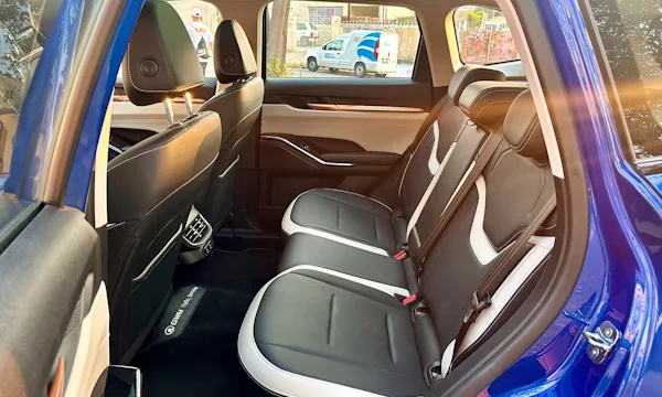 O porte avantajado por fora, traz ao GWM Haval H6 um interior espaçoso. Mesmo com cinco pessoas à bordo, ninguém reclama de falta de espaço ou desconforto. Há área de sobra para as pernas e ombros, mesmo com pessoas altas no banco traseiro, que conta com controle de inclinação do encosto.