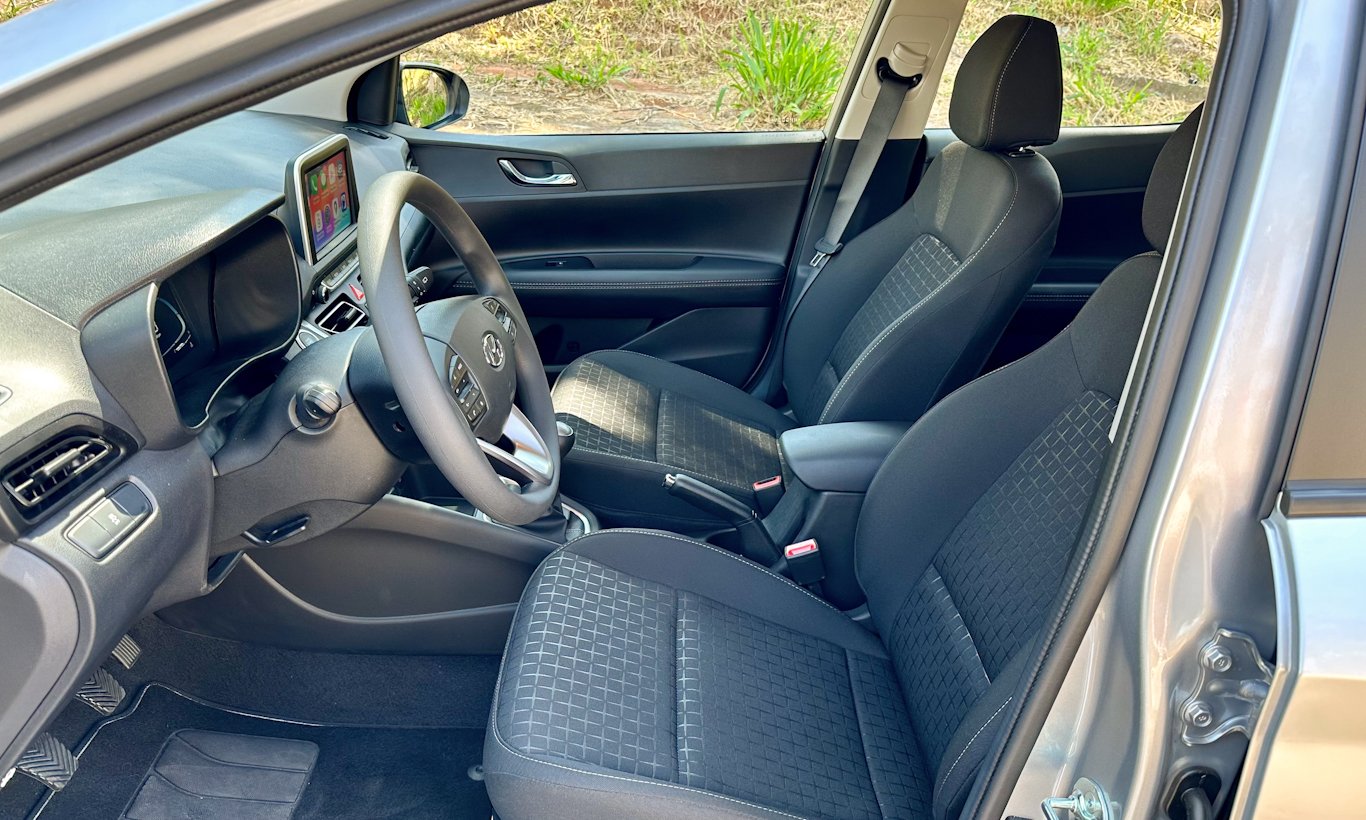 Um dos pontos nos quais o Hyundai HB20 sempre mandou bem, desde sua primeira geração, é no interior. A cabine tem acabamento bem feito, com plásticos de qualidade e bem sólidos, além de montagem justa. Os materiais usados são bons a ponto de que, o volante mesmo sem couro, não incomoda.