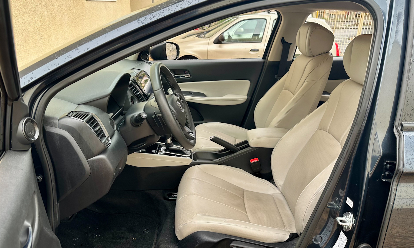 É um revestimento que traz sofisticação a mais para o interior do sedã compacto, mas é bem suscetível a sujeiras. Os plásticos usados na montagem da cabine estão acima dos presentes no Toyota Yaris e do Volkswagen Virtus, mas um degrau abaixo do Hyundai HB20S, especialmente em áreas como a parte superior do painel, onde parece um carro barato.