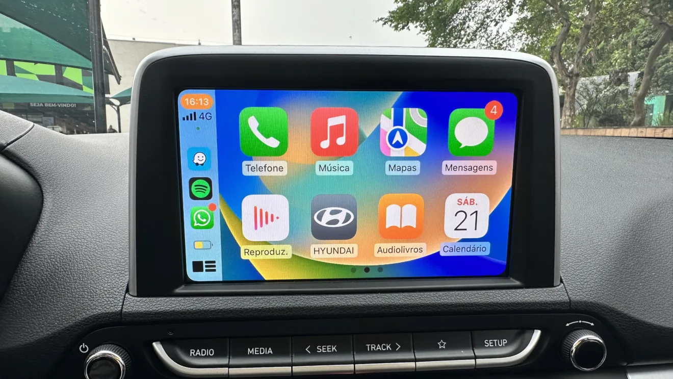 Já a central multimídia blueMedia de oito polegadas possui conexão Android Auto e Apple CarPlay sem fio. A interface é rápida, enquanto as trocas de faixas são feitas tanto na tela quanto pelos botões físicos.