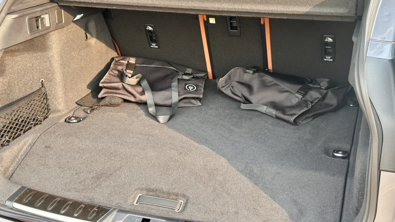 Os bancos são muito confortáveis e abraçam bem o motorista e passageiro, trazendo regulagem elétrica em vários elementos. O problema é que o encosto é fixo. Entendo a proposta esportiva, mas estamos falando de uma versão regular e híbrida de um SUV de luxo. Fica parecendo redução de custo simples.