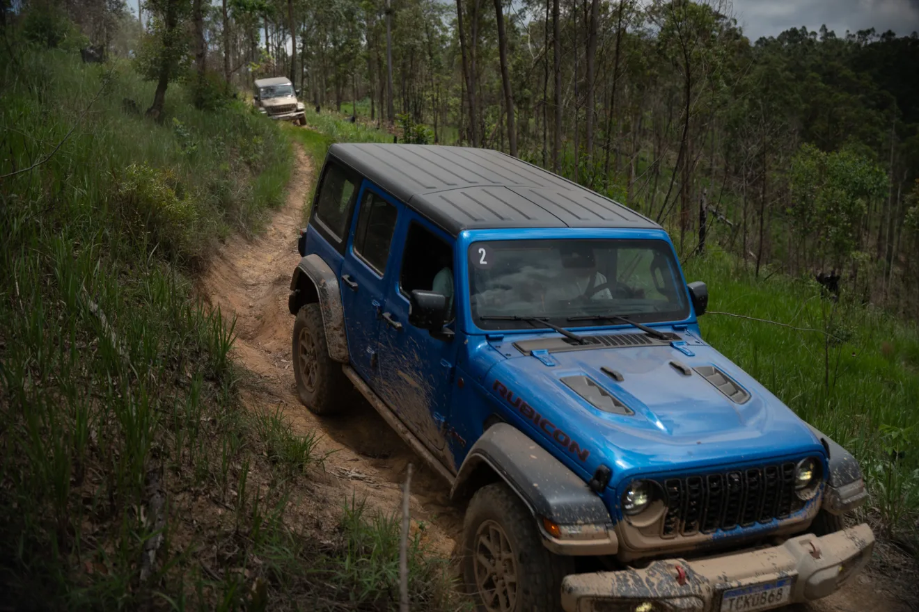 Além disso, o Wrangler oferece uma série de recursos para vencer o fora de estrada. Há ganchos de reboque na dianteira e na traseira, enquanto a tração 4×4 Rock-Trac possui um Crawl Ratio de 77:1, com relação reduzida de 4:1 e bloqueio dos diferenciais Tru-Lok.