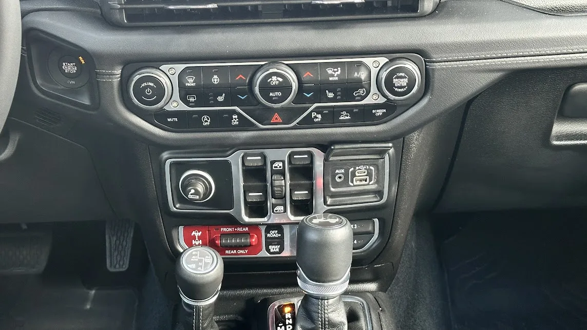 Todos os comandos estão localizados na porção central do painel, seguindo a forma e a função. Os comandos dos vidros também estão lá, afinal, o Wrangler é um grande Lego, permitindo dirigir sem o teto, as quatro portas e o para-brisa rebatido, o que amplia a sensação de liberdade. O console central reúne a alavanca seletora da transmissão automática de oito marchas, a de tração e as funções que ajudam a salvar a pele no off-road.