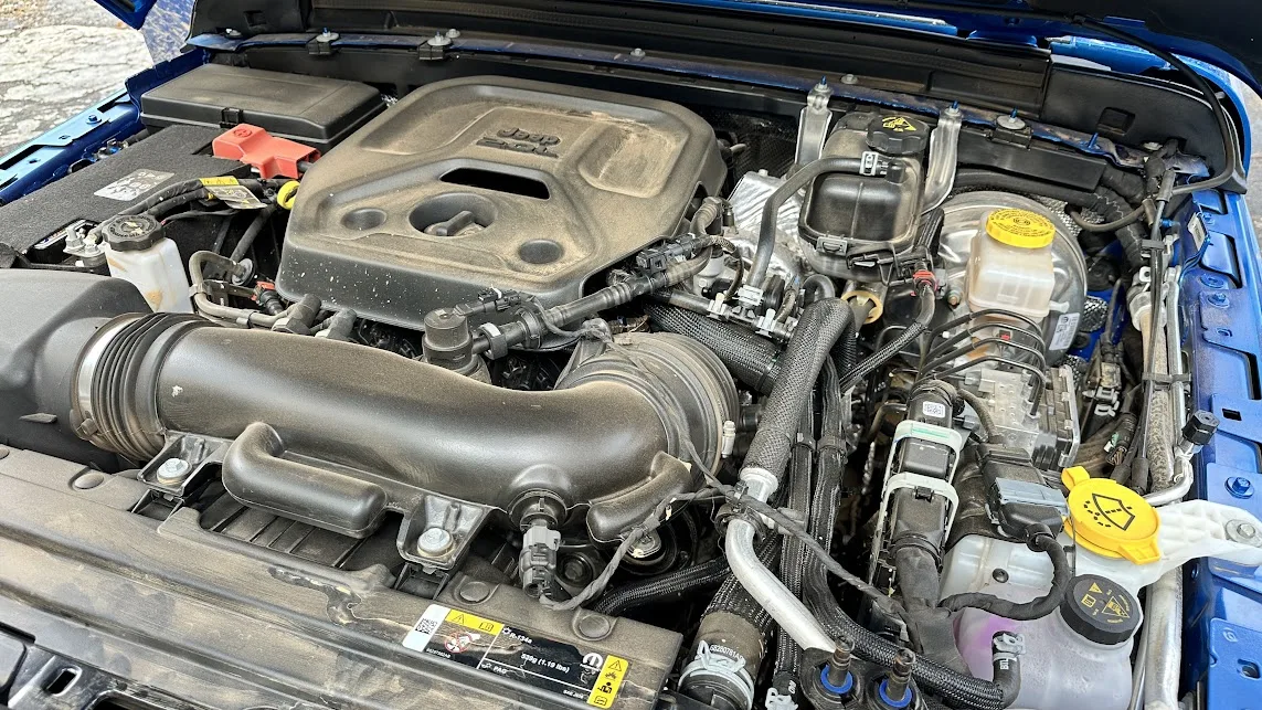 Com mais de duas toneladas (2.051 kg), o Wrangler não decepciona quando provocado, graças ao motor de quatro cilindros em linha 2.0 turbo Hurricane T4 em trabalho conjunto com o câmbio automático de oito marchas. Segundo os números declarados pela Jeep, o Wrangler precisa de 7,6 segundos para chegar aos 100 km/h, e a velocidade máxima é de 156 km/h.