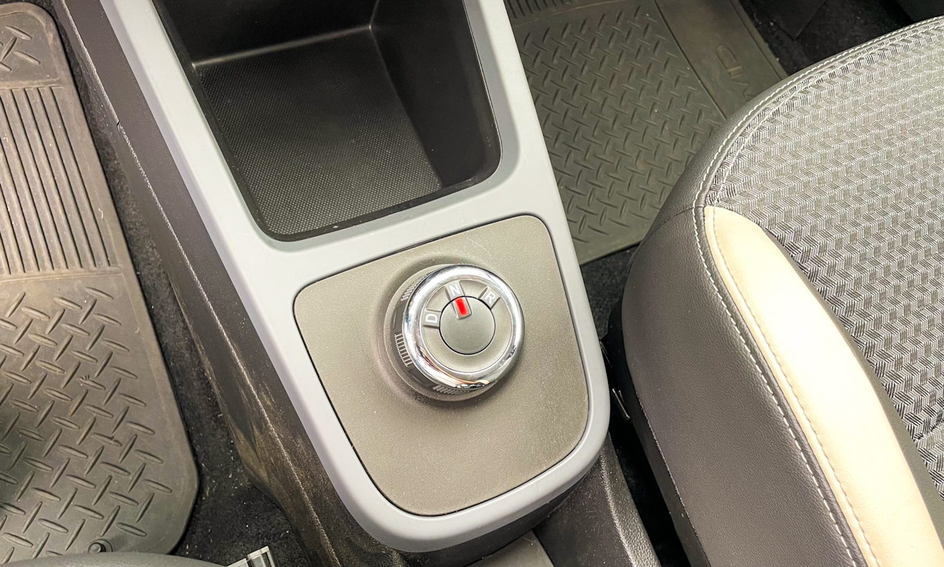 Há também regulagem de altura dos faróis por um roto no canto do painel, que mais parece mesmo o botão para ligar as luzes. As saídas de ar não têm acabamento brilhante como no Brasil, mas o Kwid elétrico tem vidros elétricos traseiros e botões na parte inferior do console os quais o brasileiro jamais sonhou em ter.