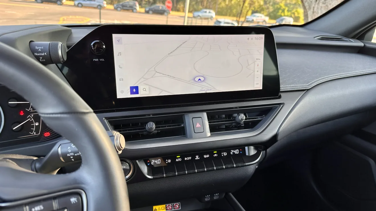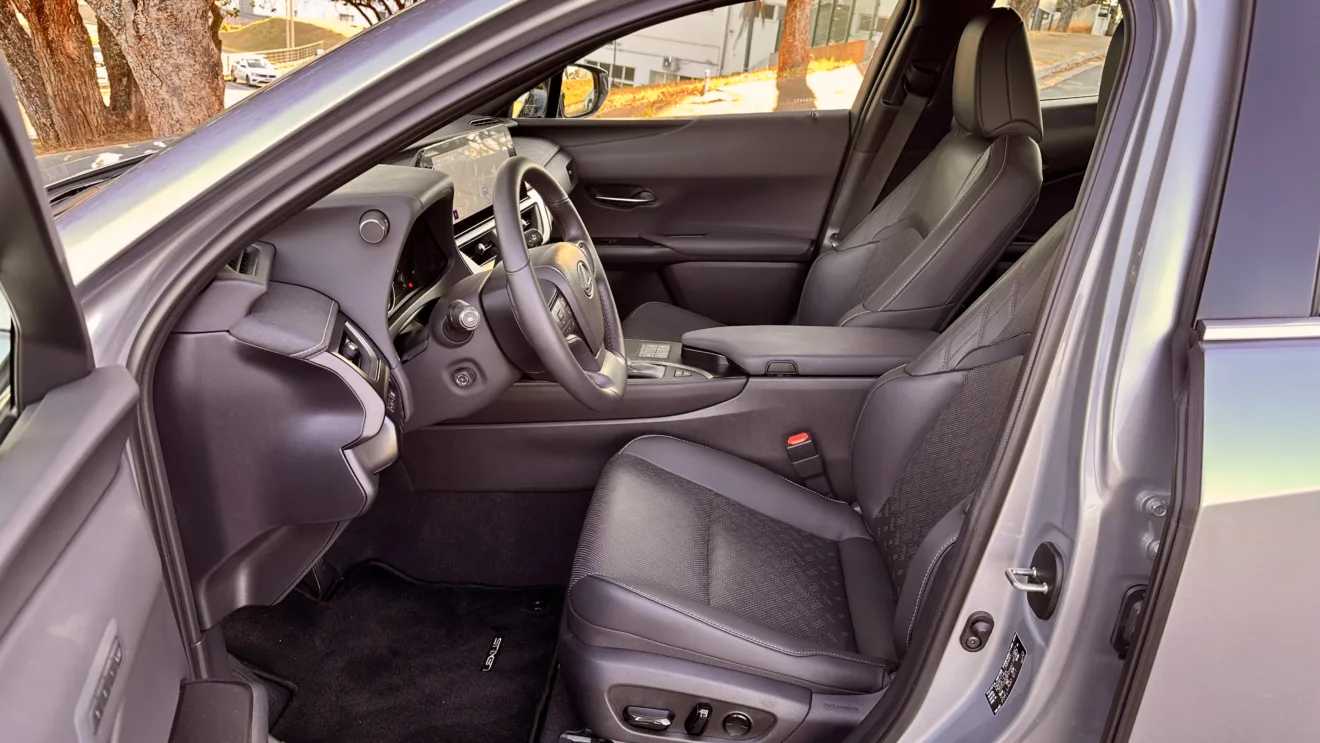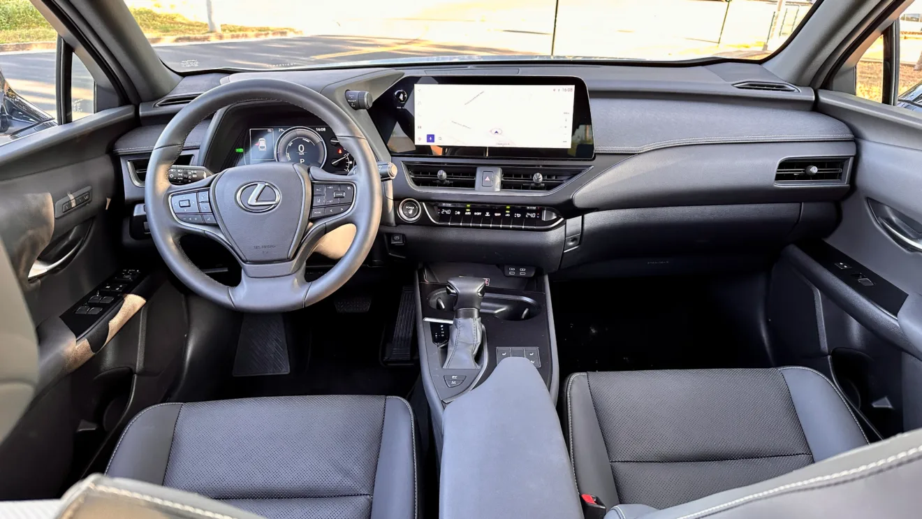 Quem senta na dianteira tem a disposição uma posição de dirigir mais baixa, parecida com a do Volkswagen Nivus. Diferentemente de muitos SUVs, a Lexus não força uma posição alta só para parecer um utilitário. O volante deveria ter mais variedade de ajuste, pois, tal qual um Yaris, é um tanto quanto enfiado no painel.