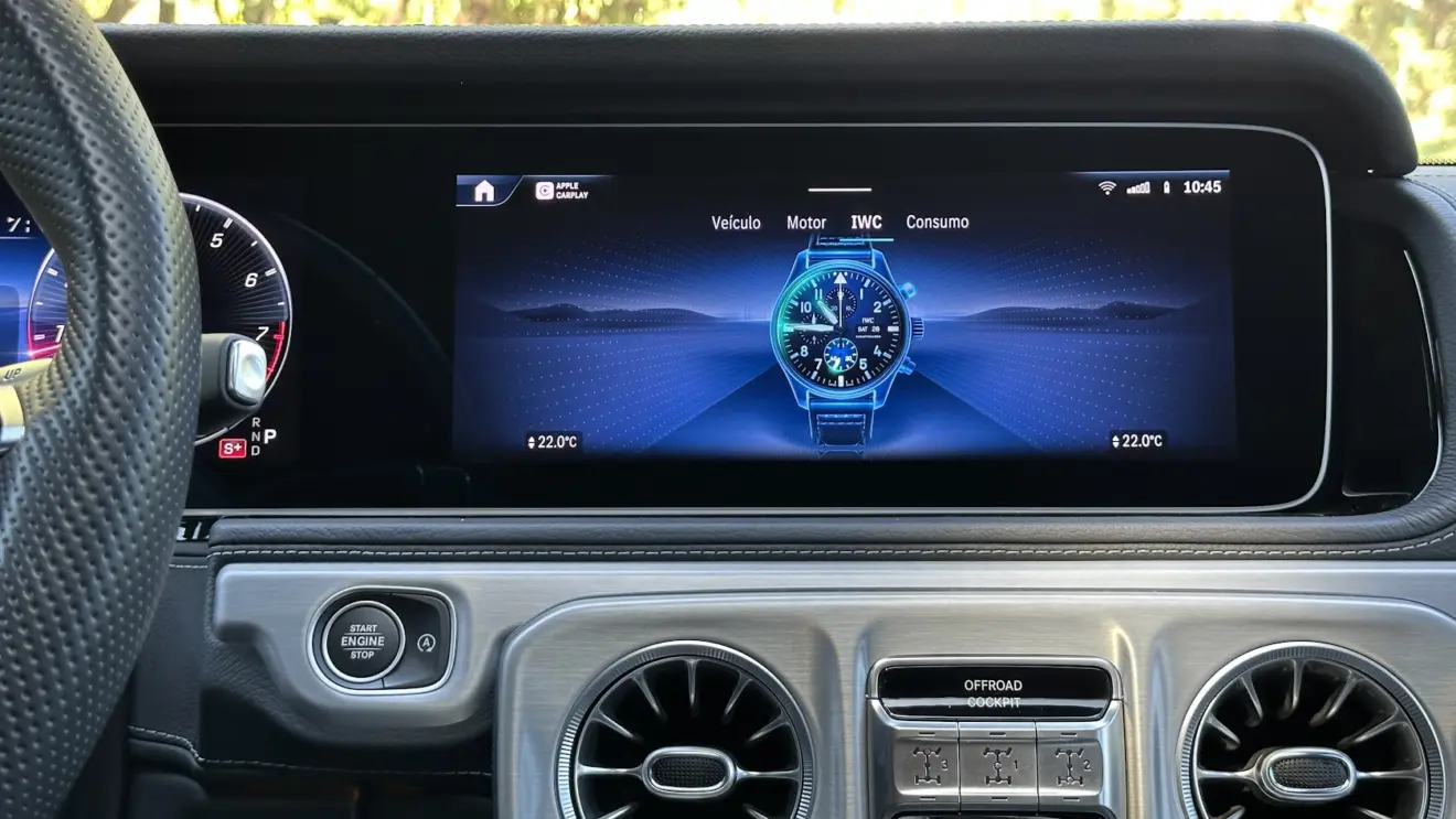 Ele recebe até cinco passageiros com um nível de luxo extremo e o cheiro da cabine remete diretamente aos helicópteros e jatos executivos. O Classe G recebeu o sistema multimídia MBUX com tela de 12,3 polegadas e Apple CarPlay/Android Auto sem fio, enquanto o som assinado pela Burmester 3D com 18 alto-falantes e 760W toca do Heavy Metal ao Eletrônico com absoluta fidelidade.