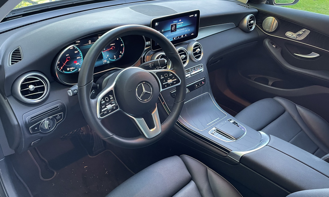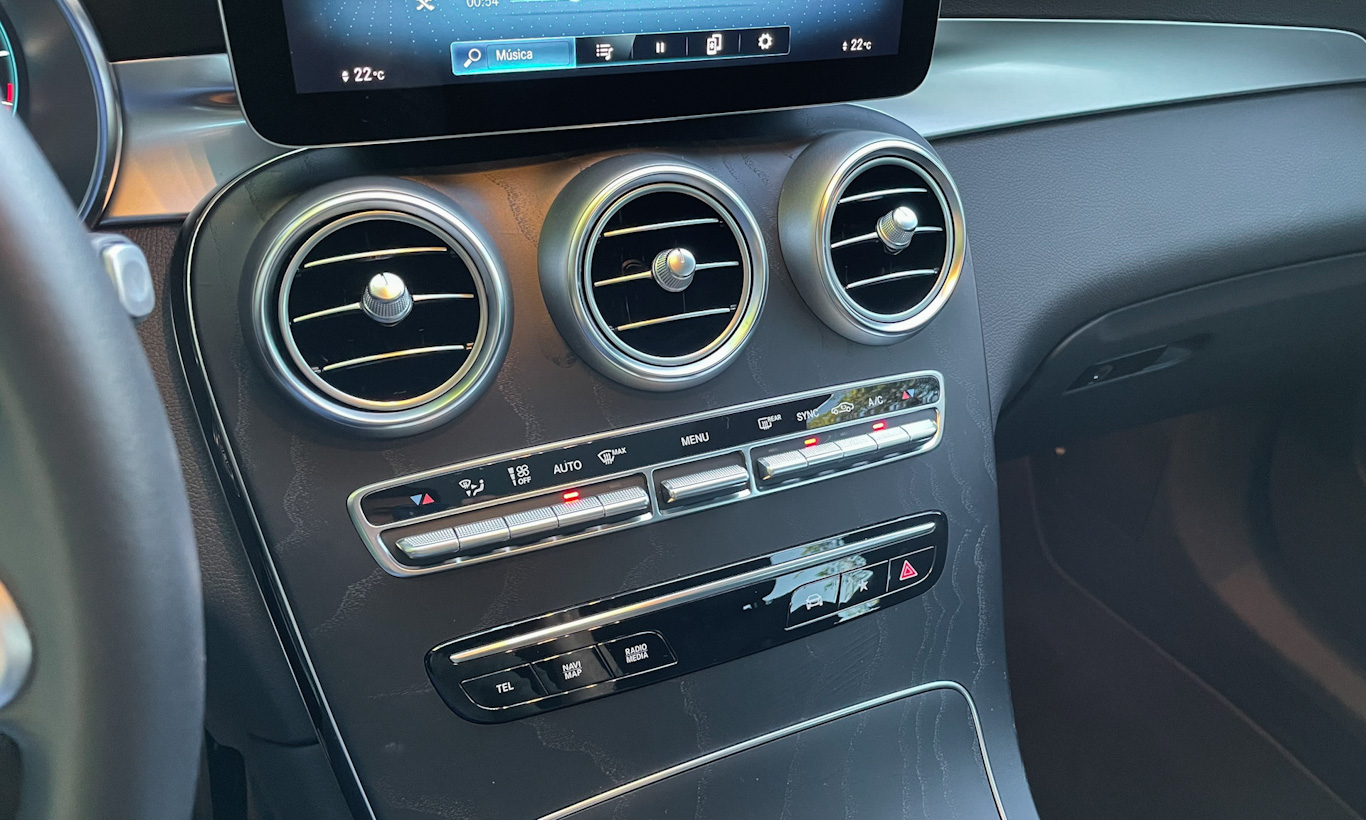 Se dinamicamente o GLC ainda parece bastante moderno, mesmo apelando para o diesel, na hora de analisar o interior é que a idade começa a pesar. Essa geração foi lançada em 2015 e reestilizada em 2019. Contudo, o modelo é todo baseado no Classe C de 2014, compartilhando basicamente todo interior.