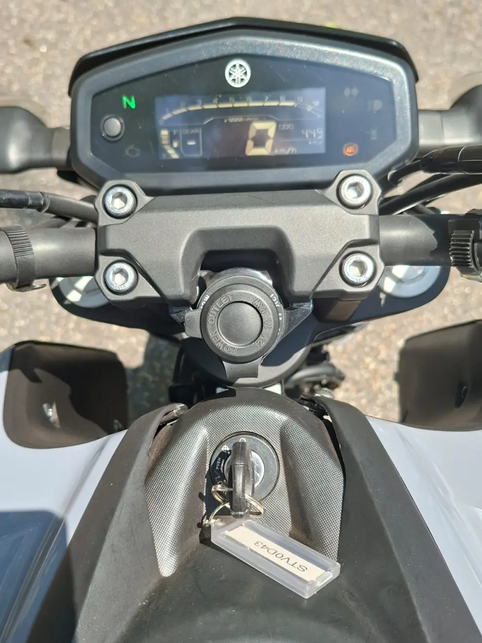 Essa tomada fica bem no meio da “mesa”, onde tradicionalmente seria a chave de ignição, que, por sua vez, foi deslocado para a parte frontal do tanque. Como esse é o contato mas visual mais frequente que você terá com sua FZ, posso garantir que dá um ar “premium” à FZ. Ter essa chave no meio do tanque, sei lá, dá uma impressão de produto de nível superior.