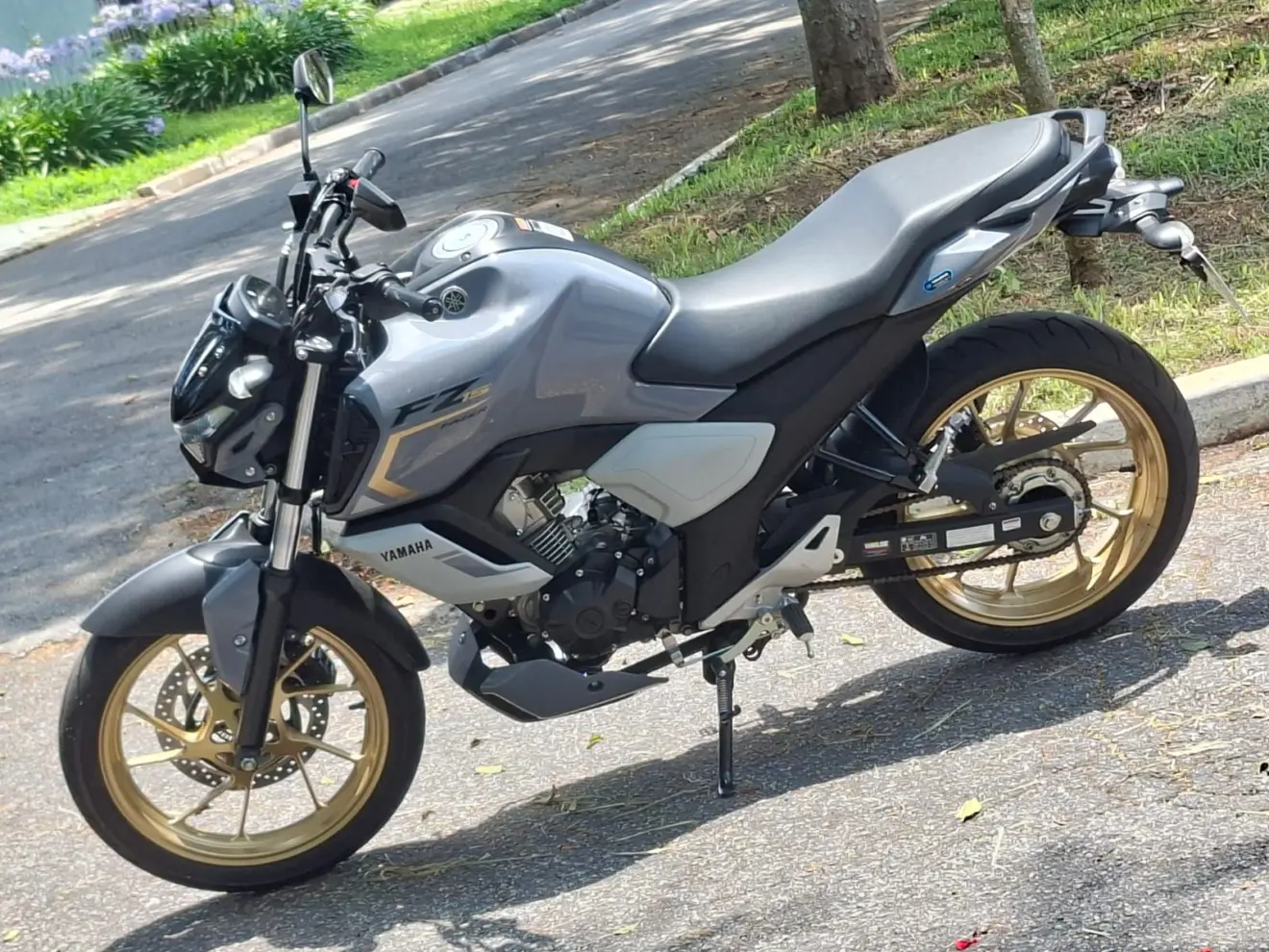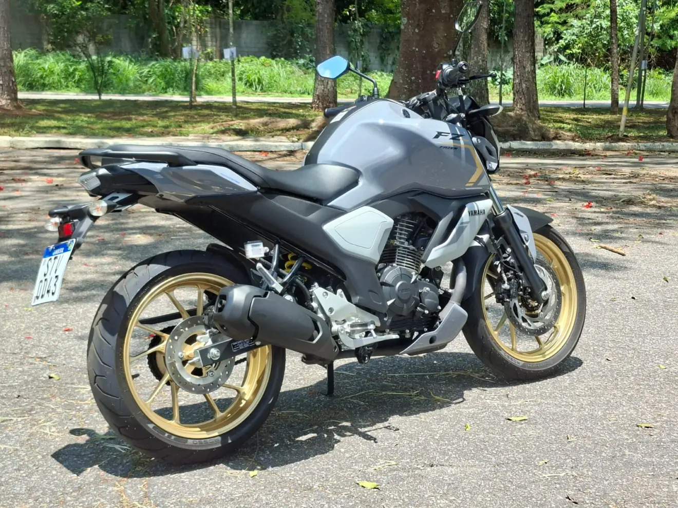 No coração da FZ15 segue o motor BlueFlex de 150 cm³, monocilíndrico, refrigerado a ar e com injeção eletrônica. O conjunto entrega até 11,7 cv com etanol e torque de 1,3 kgf.m, números modestos no papel, mas suficientes para o uso urbano a que se propõe. A entrega linear, a boa elasticidade em baixos e médios giros e o consumo contido seguem como os principais trunfos do modelo.