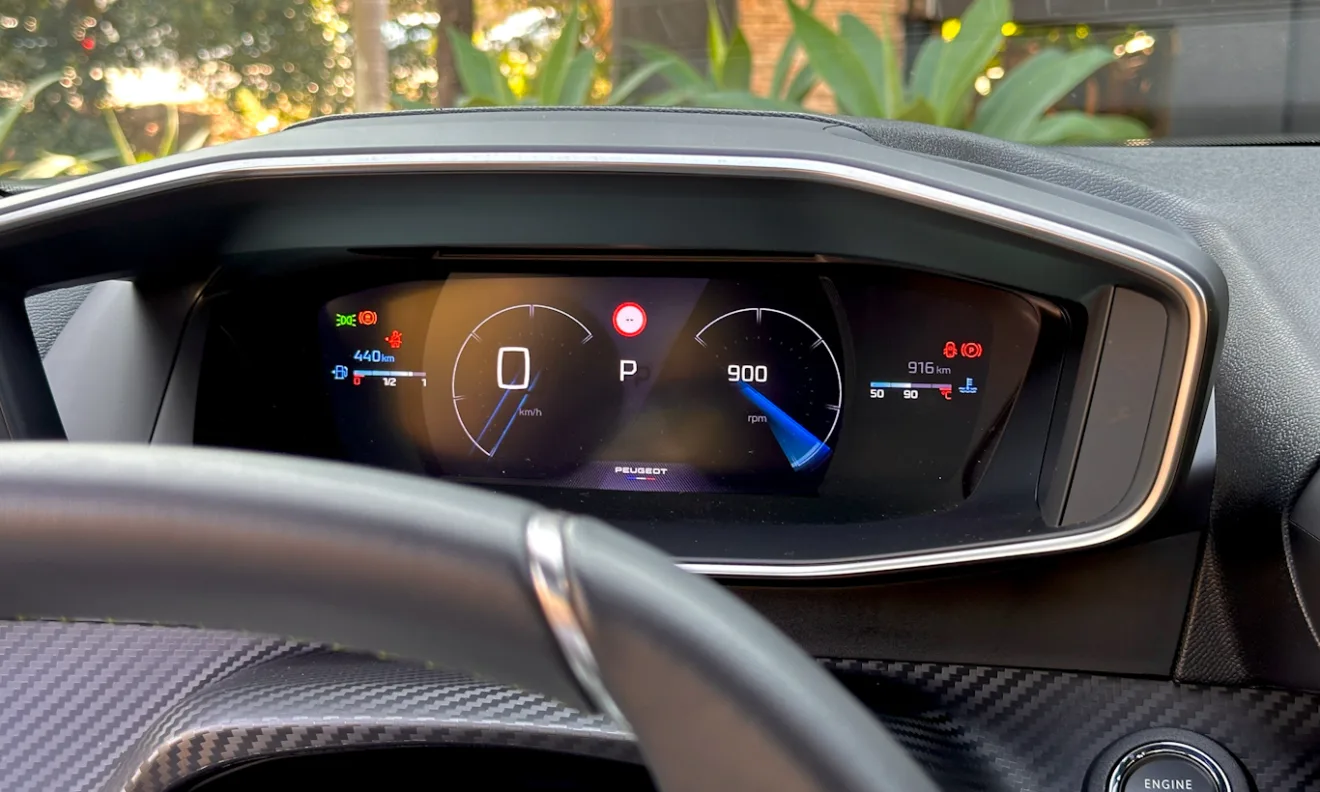 Algo que a Peugeot tem de mais positivo em seus carros é a posição de dirigir. Não é todo motorista que se adapta a ela, mas aos que mente aberta, é difícil voltar a outro carro e não estranhar. O volante é bem pequeno, com base e topo achatados, tudo para poder fazer os instrumentos serem vistos por cima do volante.
