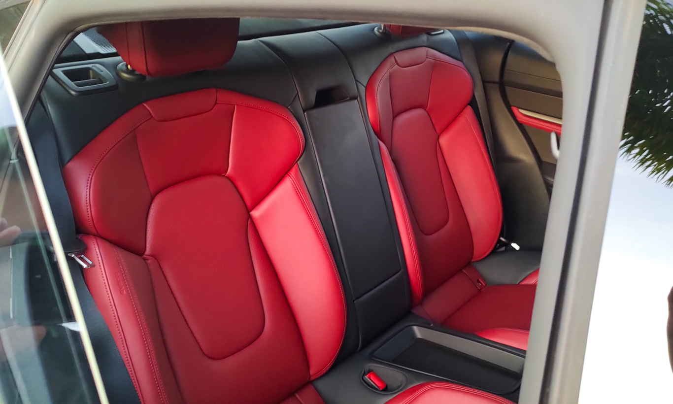 Essa amplitude fez do seu interior bastante espaçoso. Quatro pessoas viajam com bastante conforto e abraçadas pelos bancos esportivos forrados em couro de alta qualidade. Todos têm acesso a aquecimento e regulagem individual da temperatura do ar-condicionado. Além disso, o motorista e passageiro contam com regulagem elétrica até das almofadas laterais do banco.