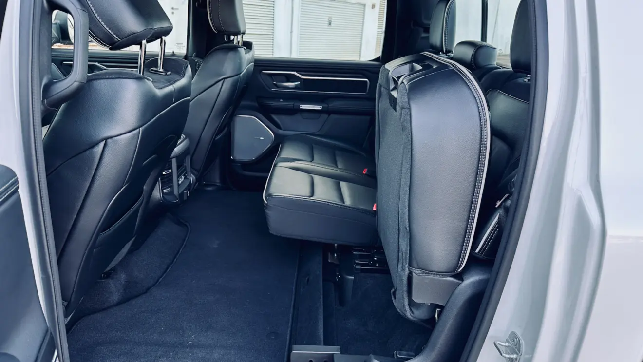 Felizmente, a Ram agora coloca a capota marítima como item de série, falha que vinha tendo com suas caminhonetes. A imensidão de espaço segue lá atrás com 1.200 litros de capacidade com 557 kg. A tampa da caçamba tem abertura e fechamento elétrico de alta velocidade, além de um degrau na lateral, que é difícil de ser colocado no lugar depois de usado.