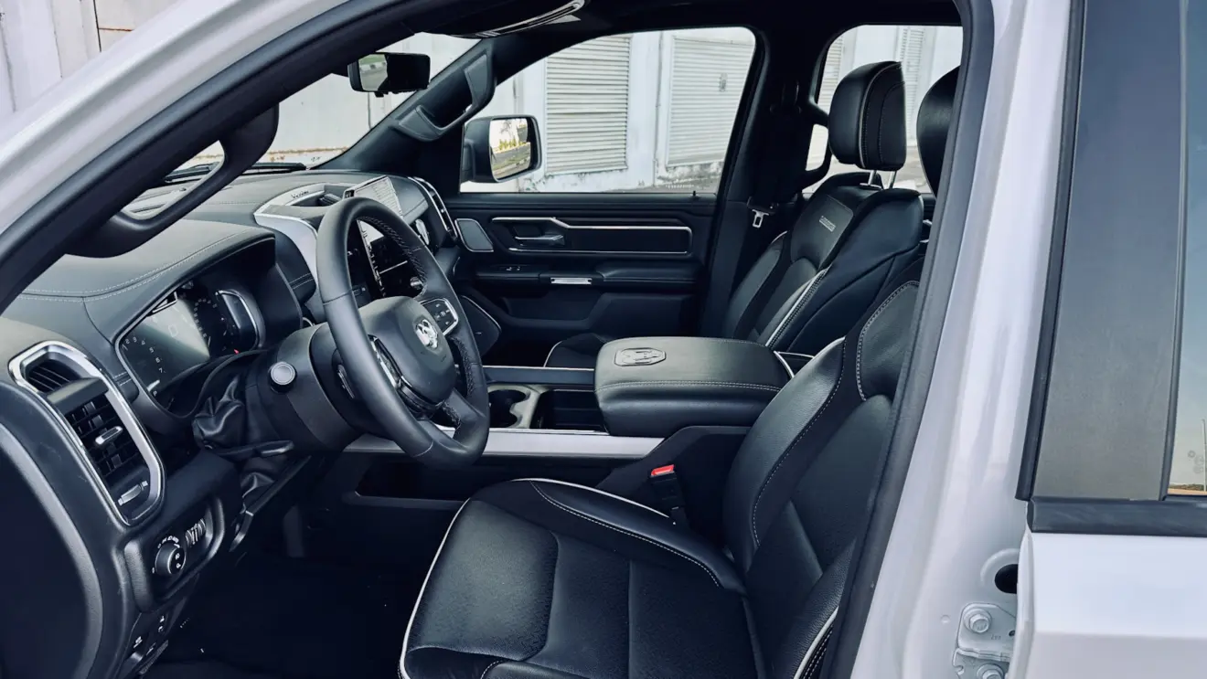 Ser tão grande e cara, faz com que a Ram 1500 também precise ser bem equipada. De série, ela conta com seis airbags, controle de tração e estabilidade, sistema de câmeras 360°, faróis full-LED com acendimento automático, pedais com ajuste elétrico, sistema de manutenção em faixa, alerta de tráfego cruzado, sensor de estacionamento dianteiro e traseiro.