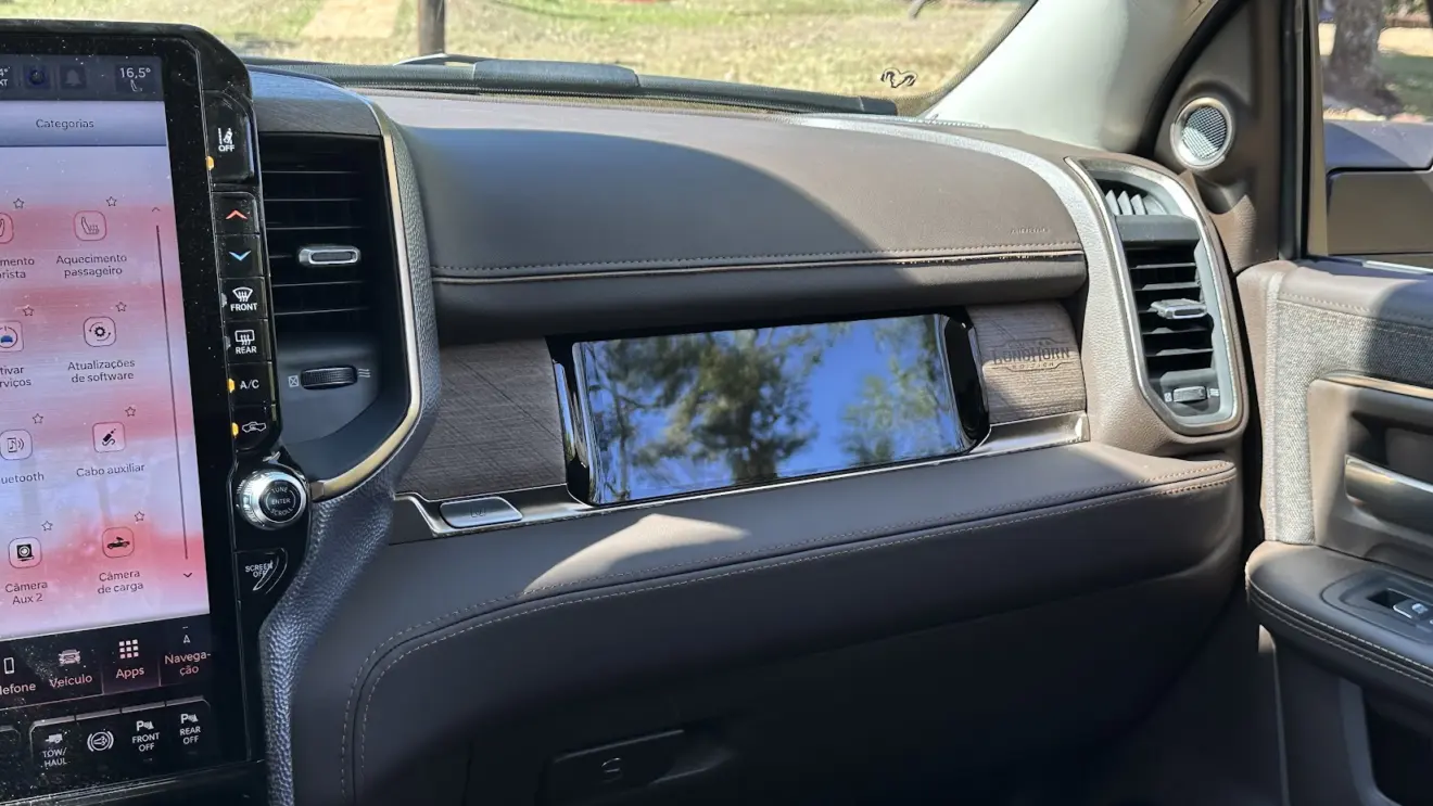 Já as Ram Box, com 122 litros de capacidade cada, oferecem praticidade e segurança: têm chave, drenos e até tomada residencial do lado do motorista. Além dessa praticidade, o assistente de reboque com sensores cuida da direção durante a marcha à ré. Aliás, o condutor só precisa indicar a direção com o seletor giratório no console central para realizar a manobra facilitando a vida ao volante.